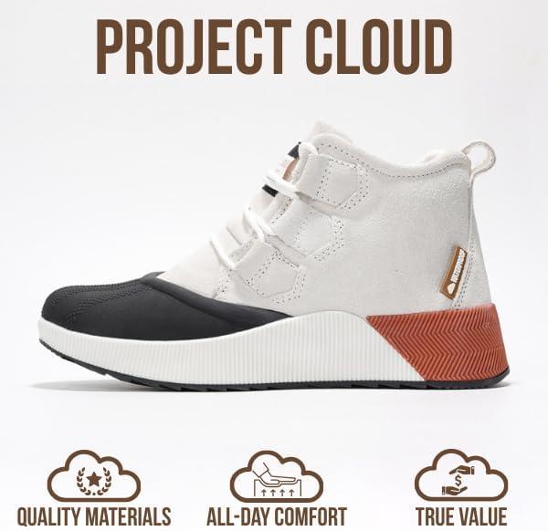 Project Cloud Waterproof Snow Boots for Women - Memory Foam Insole Non-Slip Womens Snow Boots & Winter Shoes with Shoe Lace - Lightweight Indoor Outdoor Shoes(Cream-sport Upper)