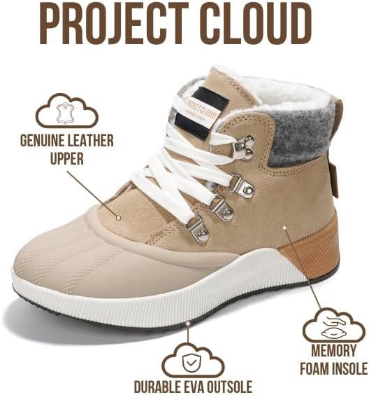 Project Cloud Waterproof Snow Boots for Women - Memory Foam Insole Non-Slip Womens Snow Boots & Winter Shoes with Shoe Lace - Lightweight Indoor Outdoor Shoes(Taupe-hiker Upper)