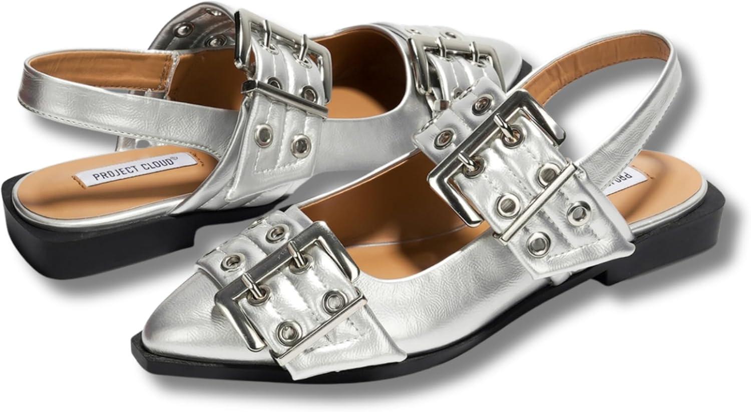 Project Cloud Womens Flats – Memory Foam Flats Shoes for Women Footwear Non-Slip Rubber Sole Womens Sandals – Perfect Sandals for Women 2025 (Katharyn)(Silver)