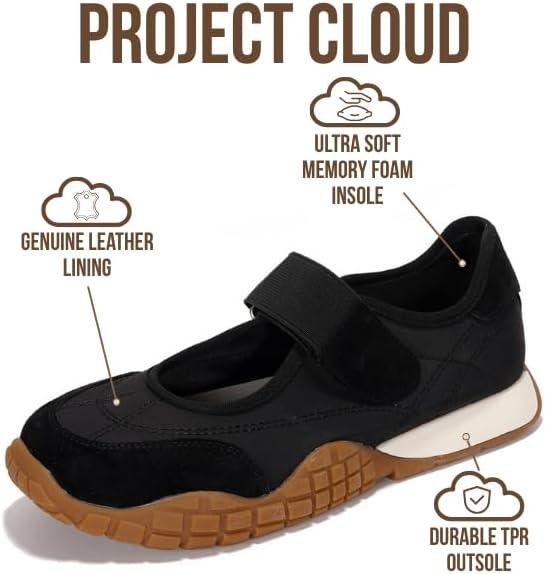 Project Cloud Womens Shoes – Lightweight Mary Jane Shoes Women with Memory Foam Insole – Non Slip Flats for Women Footwear – Women’s Fashion Sneakers 2025 (Donna)(Black)