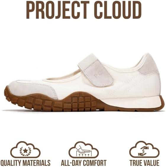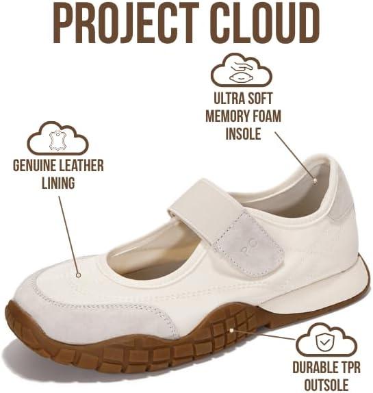 Project Cloud Womens Shoes – Lightweight Mary Jane Shoes Women with Memory Foam Insole – Non Slip Flats for Women Footwear – Women’s Fashion Sneakers 2025 (Donna)(White)