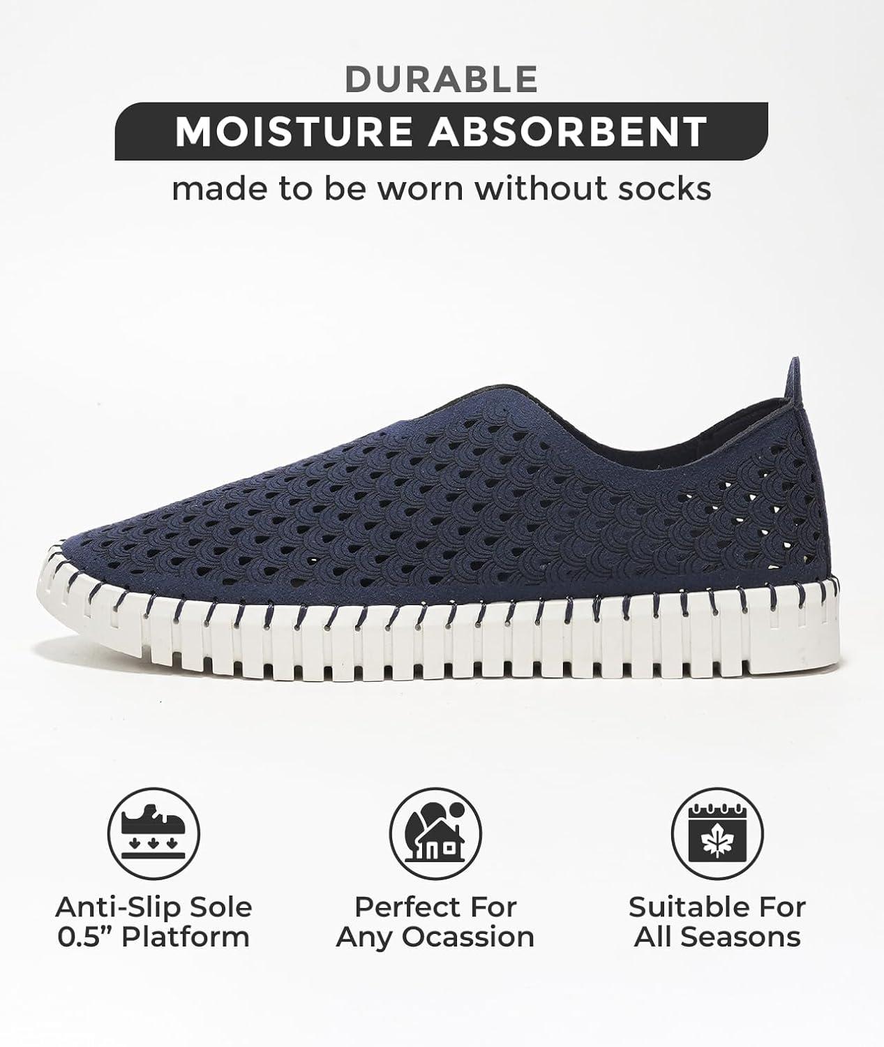 Project Cloud Womens Shoes – Lightweight Summer Loafers for Women with Memory Foam Insole – Stylish & Comfortable Womens Loafers - Perfect Summer Shoes for Women 2025 (Lily)(Blue)