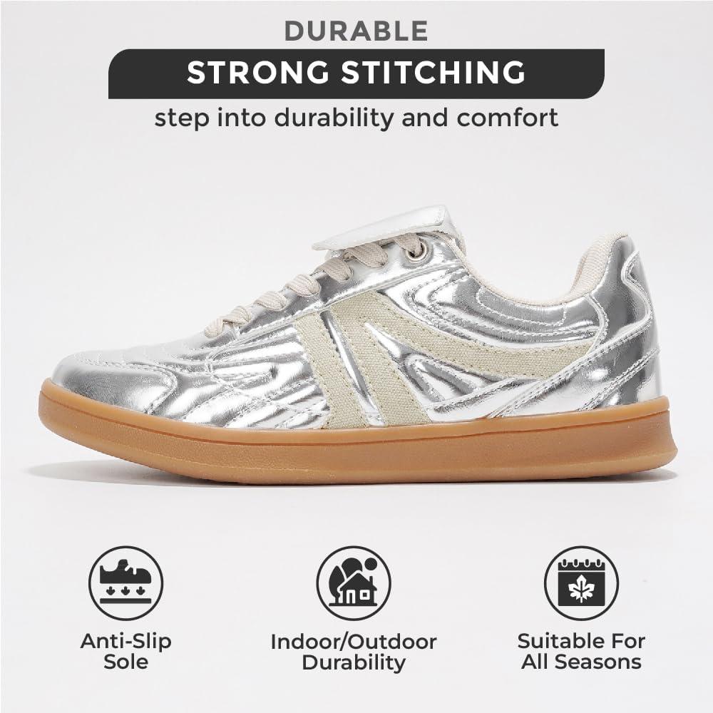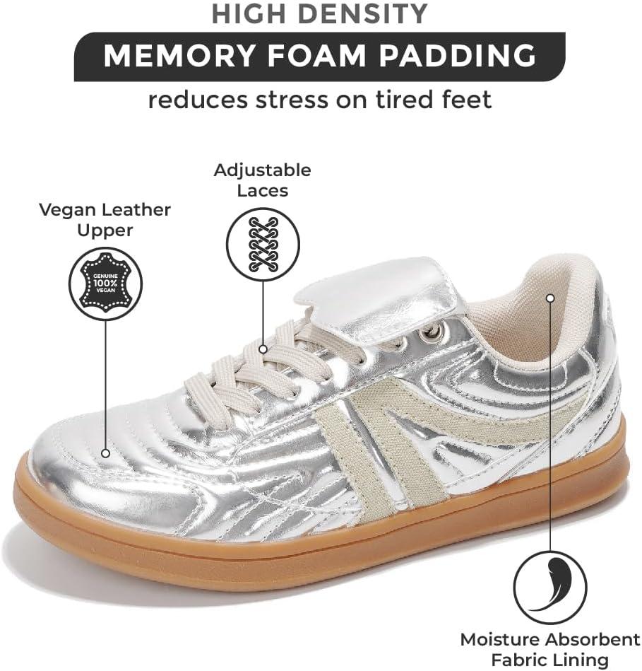 Project Cloud Womens Sneakers – Memory Foam Casual Shoes for Women Footwear Lace Up Women’s Fashion Sneakers – Non-Slip Comfortable Trendy Shoes Womens (Madrid)(Silver)