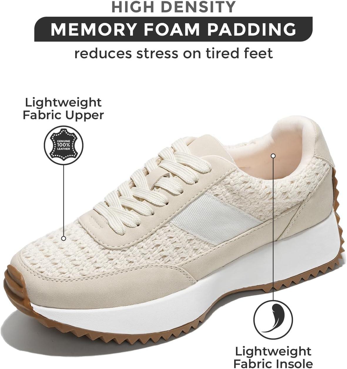 Project Cloud Womens Sneakers – Memory Foam Insole and Lightweight Spring Shoes – Non-Slip Lace Up Trendy Shoes – Fashion Sneakers for Women 2025(Beige)