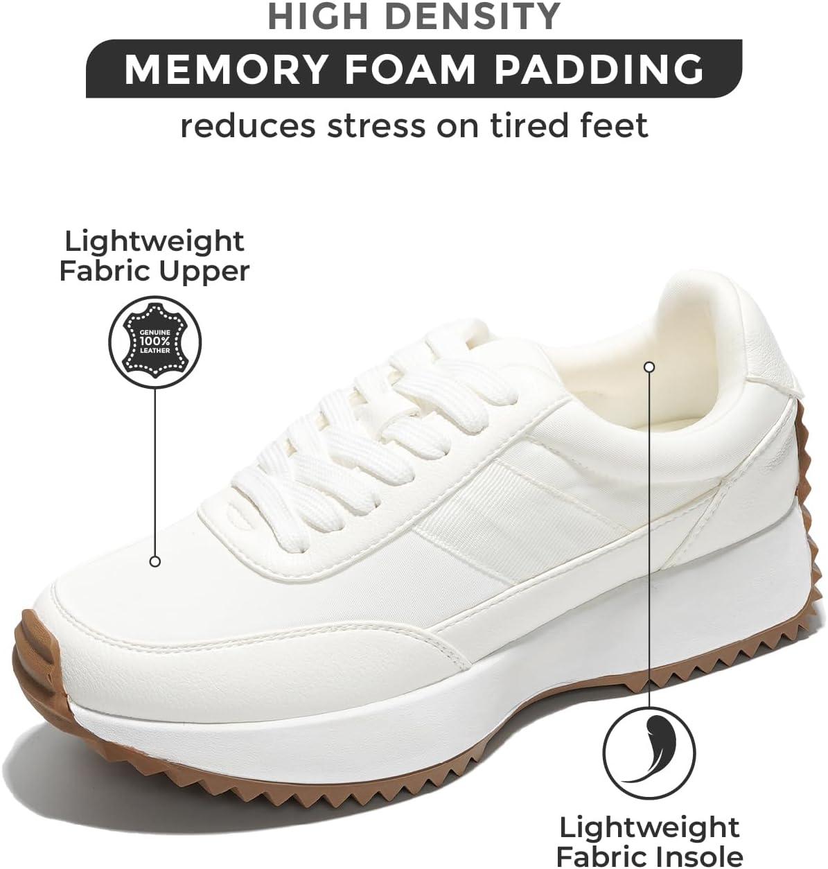 Project Cloud Womens Sneakers – Memory Foam Insole and Lightweight Spring Shoes – Non-Slip Lace Up Trendy Shoes – Fashion Sneakers for Women 2025(White-balinda)