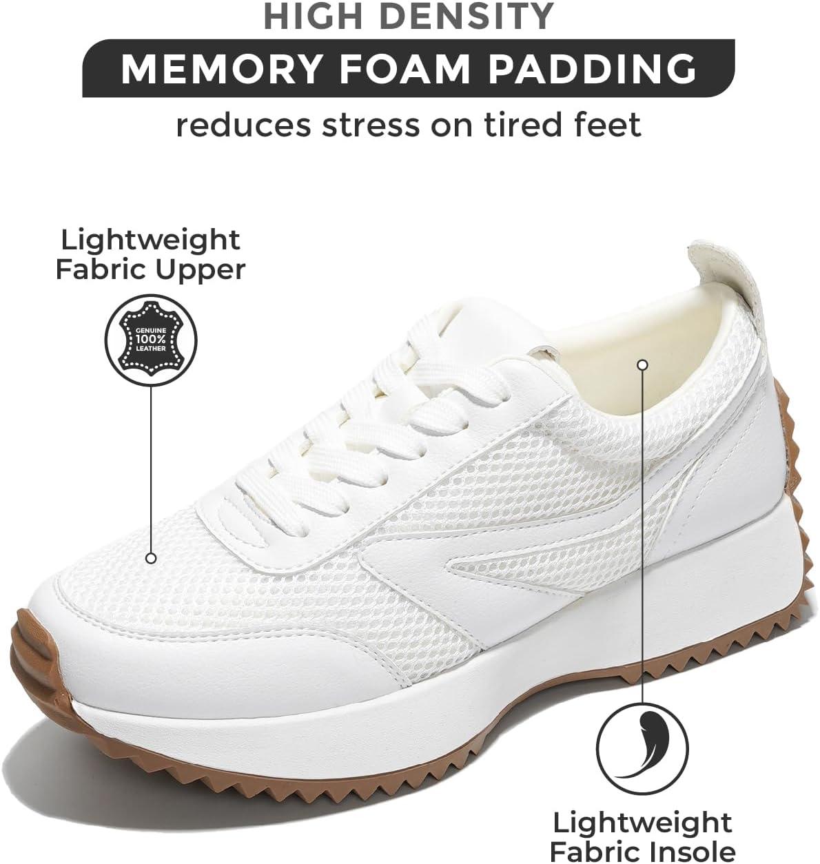 Project Cloud Womens Sneakers – Memory Foam Insole and Lightweight Spring Shoes – Non-Slip Lace Up Trendy Shoes – Fashion Sneakers for Women 2025(White)