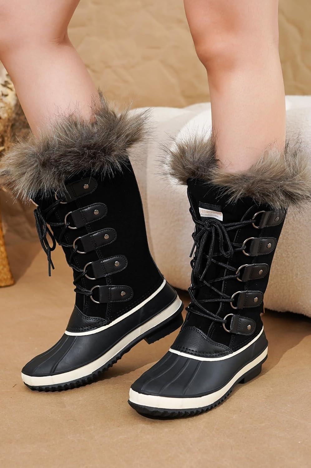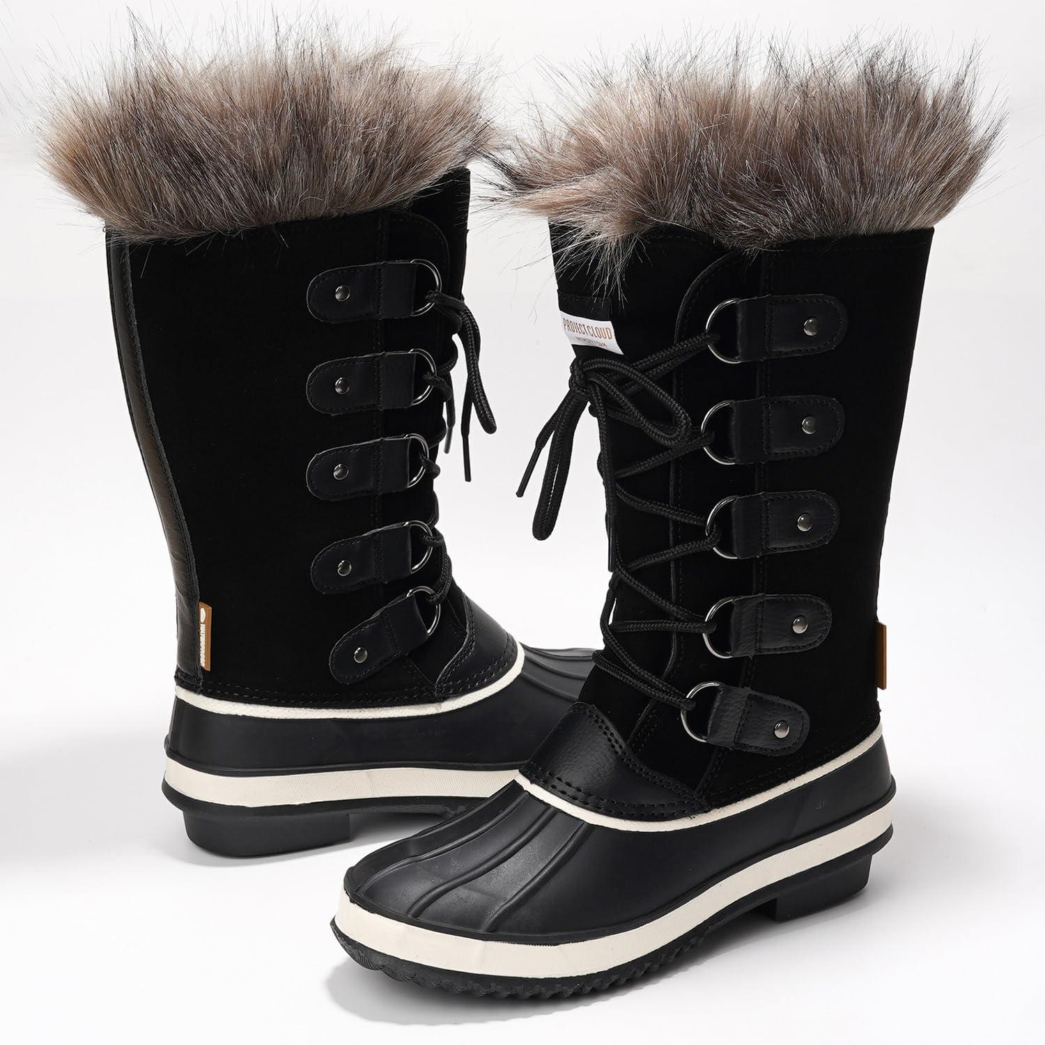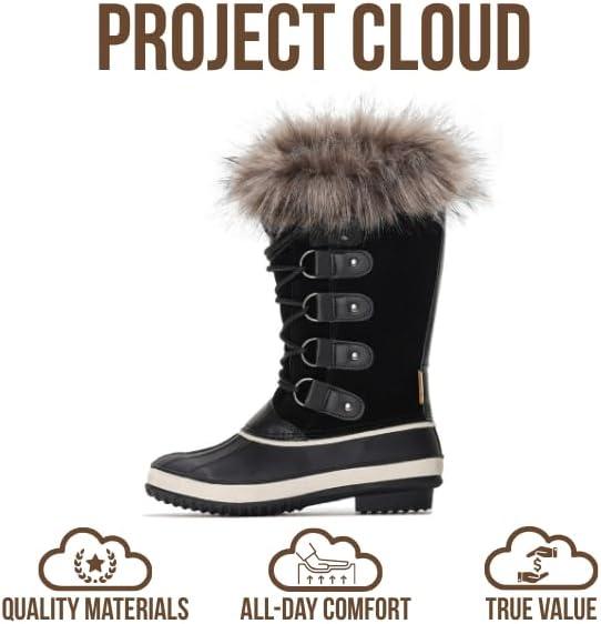 Project Cloud Womens Snow Boots – Genuine Leather Memory Foam Insole Fur Mid-Calf Winter Snow Boots for Women Footwear – Lightweight Non-Slip Outdoor Shoes (Ventura)(Black)