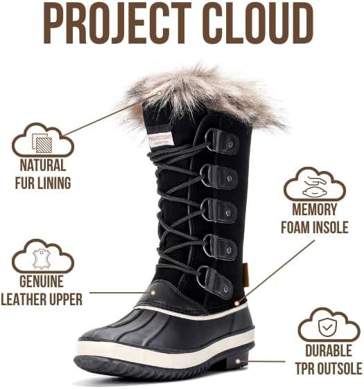 imageProject Cloud Womens Snow Boots  Genuine Leather Memory Foam Insole Fur MidCalf Winter Snow Boots for Women Footwear  Lightweight NonSlip Outdoor Shoes VenturaBlack