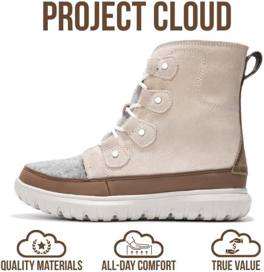 Project Cloud Womens Snow Boots – Genuine Suede Waterproof Memory Foam Insole and Non-Slip Winter Snow Boots For Women Footwear – Outdoor Shoes (Leonora)(Grey)