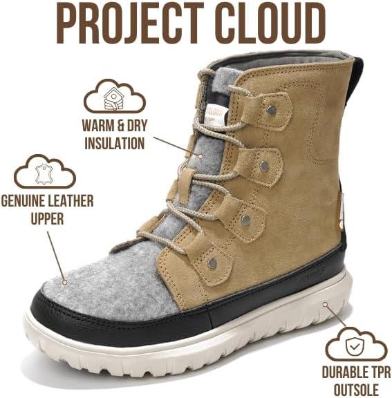 Project Cloud Womens Snow Boots – Genuine Suede Waterproof Memory Foam Insole and Non-Slip Winter Snow Boots For Women Footwear – Outdoor Shoes (Leonora)(Grey)