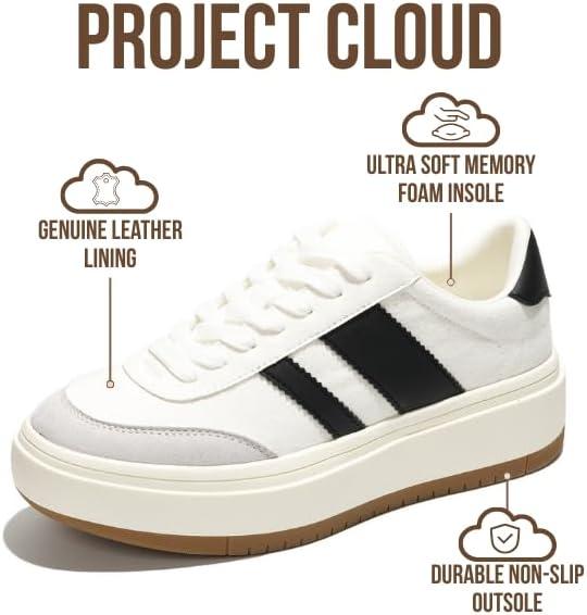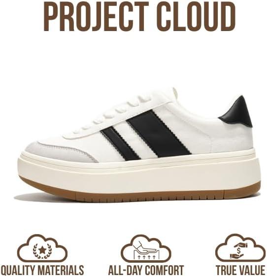 Women’s Lace-Up Fashion Sneakers – Nita by Project Cloud(White-white Stripes)