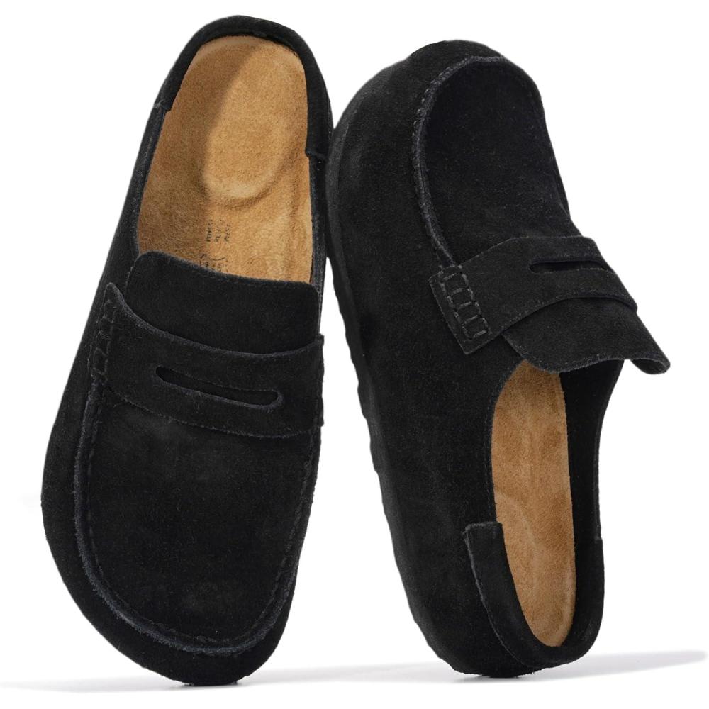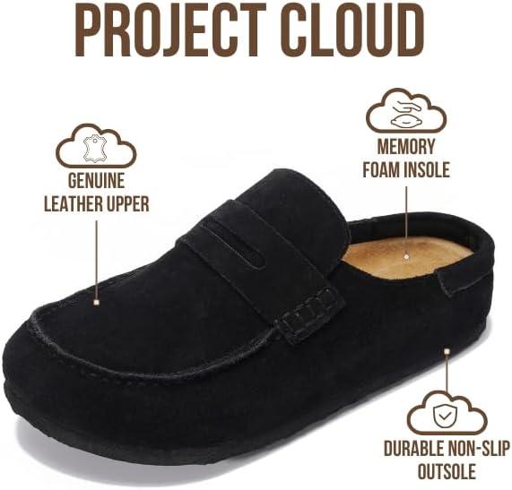 Women’s Memory Foam Clogs & Mules by Project Cloud, Water Resistant & Non-Slip (Carline)(Black Leather – Carline)