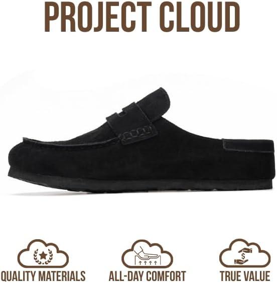 Project Cloud Mens Clogs – 100% Full Grain Genuine Leather Memory Foam Clogs for Men Arch Support Cork Footbed – Non Slip Platform Mules (Brooklyn)(Light Grey)
